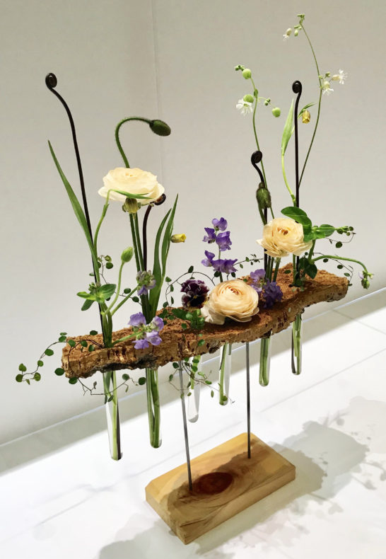 久しぶりの作品作りで3時間震えながら花を生け、ギリギリで何とか仕上げました。