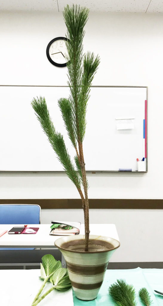 若松2本、葉牡丹2本で生けました。