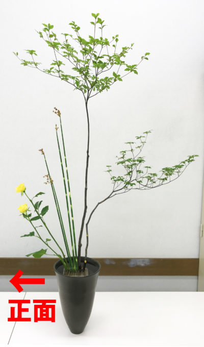 【生花】ドウダンツツジ・フトイ・バラ<三種生け>