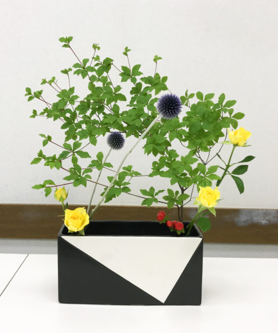 今回の自由花は前先生からマッス(かたまり)を意識して生けましょうとの指示がありました。